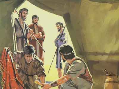 约书亚的经历;约书亚的命定;约书亚接班的条件;探子与喇合;喇合说谎可以吗?约但河水止住。